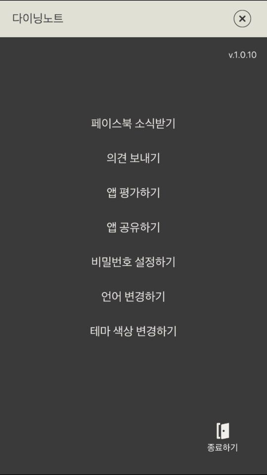 설정에 들어가게되면비밀번호, 테마 변경 및 프리미엄 업그레이드(광고제거)가 가능합니다