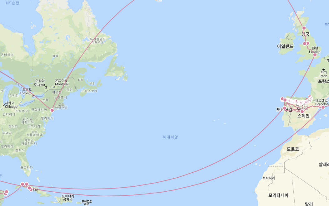 스페인에서 미국으로 이동시에는 이 루트를 참고!