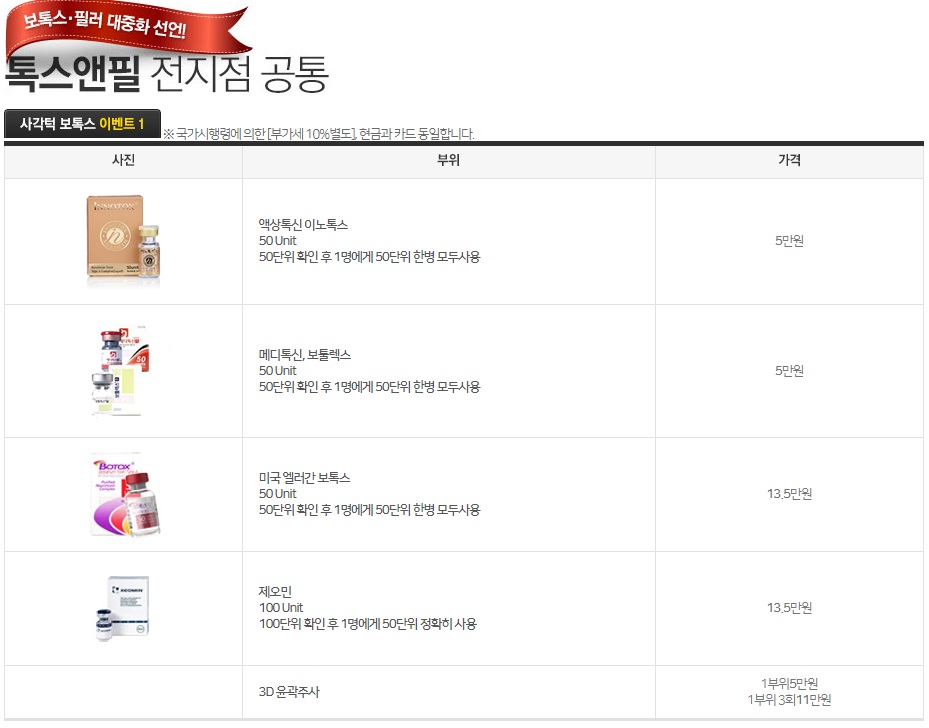 그리고 톡스앤필은 홈페이지에 시술비용 가격을 공개해놓고 있습니다. 실제로 받은 시술비용도 이에 부합했으나 실장과 상담을 하고 시술에 대한 어떤 내역서나 확인증을 받지 않았습니다. 정확히 어떤 시술을 얼마 가격에 하게 됐는지 오로지 구두로만 증명됩니다. 따라서 시술 부작용이 발생하거나 금액 혼동으로 과한 비용이 청구된다든지의 피해가 발생하면 소비자의 보상이 어려워질 수 있습니다.