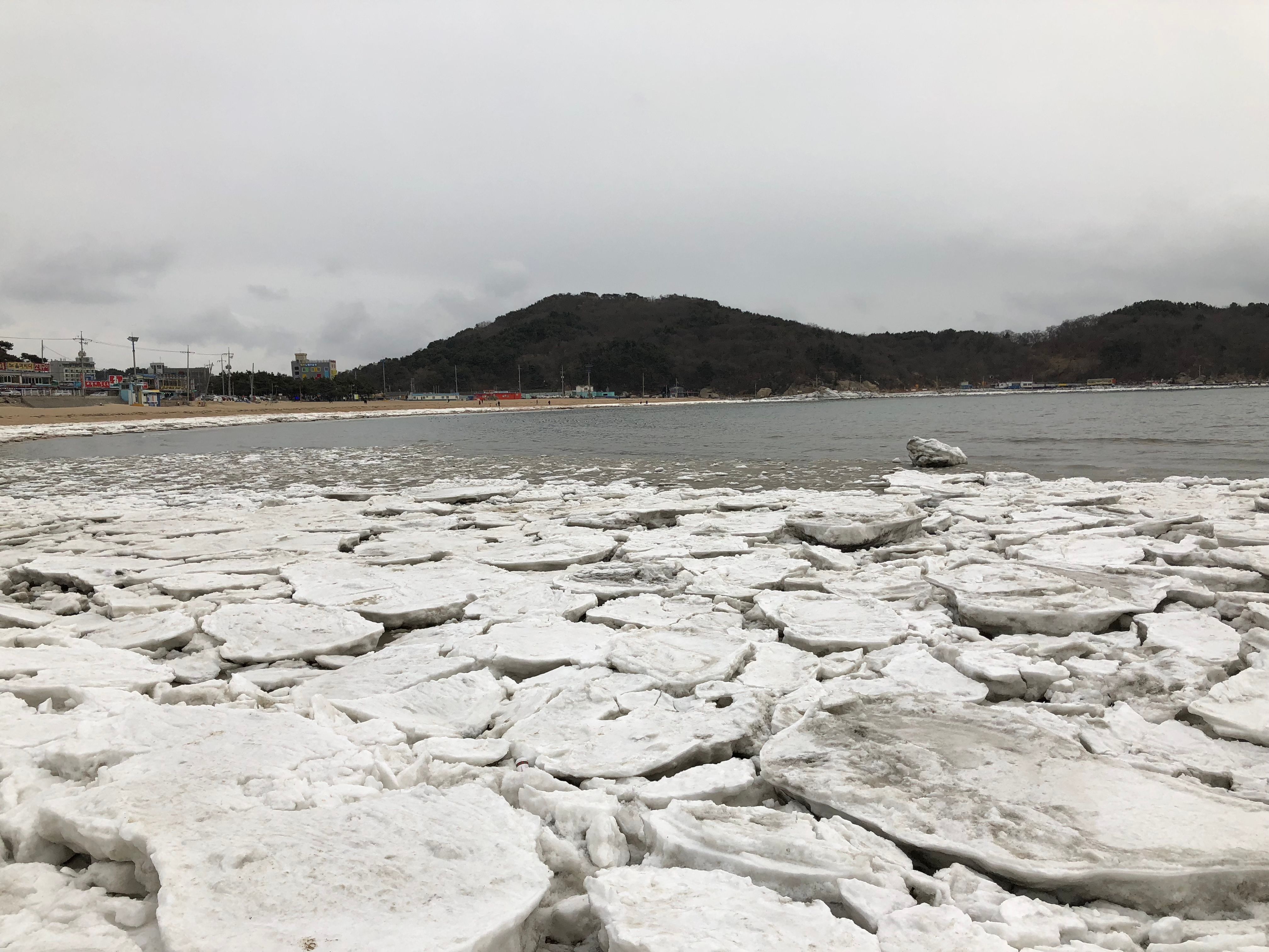 바다가 얼어있다니!!! 처음봤습니다...