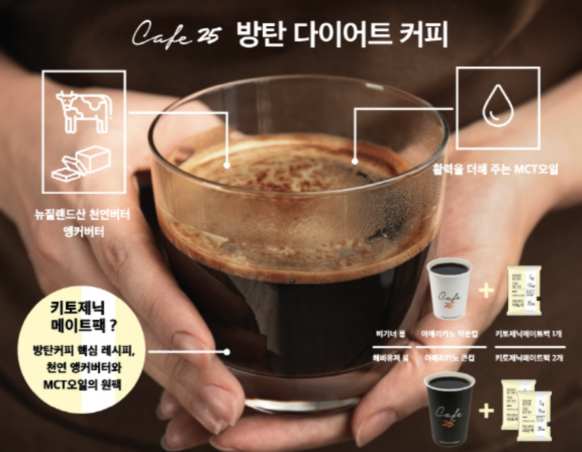 요즘 방탄커피 인기가 많아요 :)uniquessu (48)in #kr • 7 years ago 지에스에서 파는걸 먹어봤는데 생각보다 괜찮아요. 단맛 빠진 스카치캔디맛 ㅋㅋ 밑에 재료만 있으면집에서도 해먹을 수 있어요! 오늘 도전해보려고 합니다 :) 재료 1.MCT 오일 2.유기농 버터 3.아메리카노 (카누 가능)