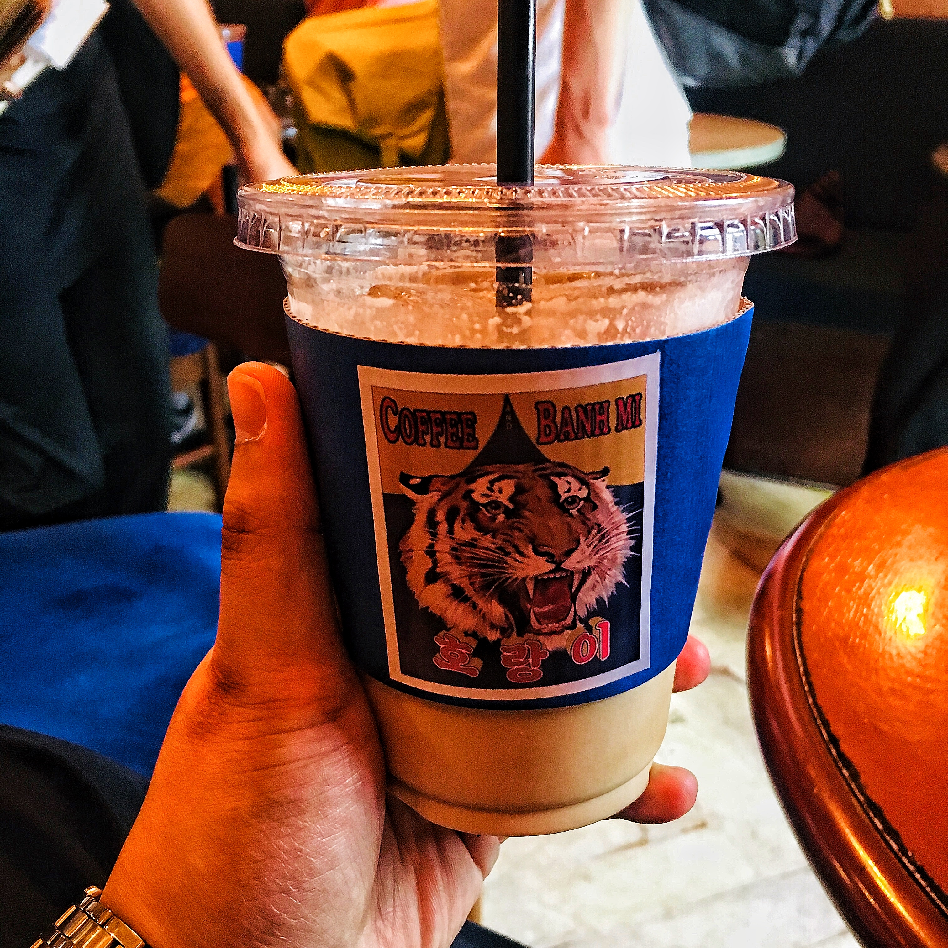 시그니처메뉴인 호랑이라떼. 일반적인 우유가 아니란 점이 특징인거 같아요. 연유일수도 생크림일수도 파우더우유일수도 있다고 생각했습니다. 가격도 3500₩ 리즈너블합니다.
