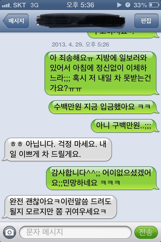 그래서 급하게 구백만원을 이체하고 메세지 보내는데 오타작렬.. ㅋㅋㅋ 수백 보냈다니 ㅋㅋ