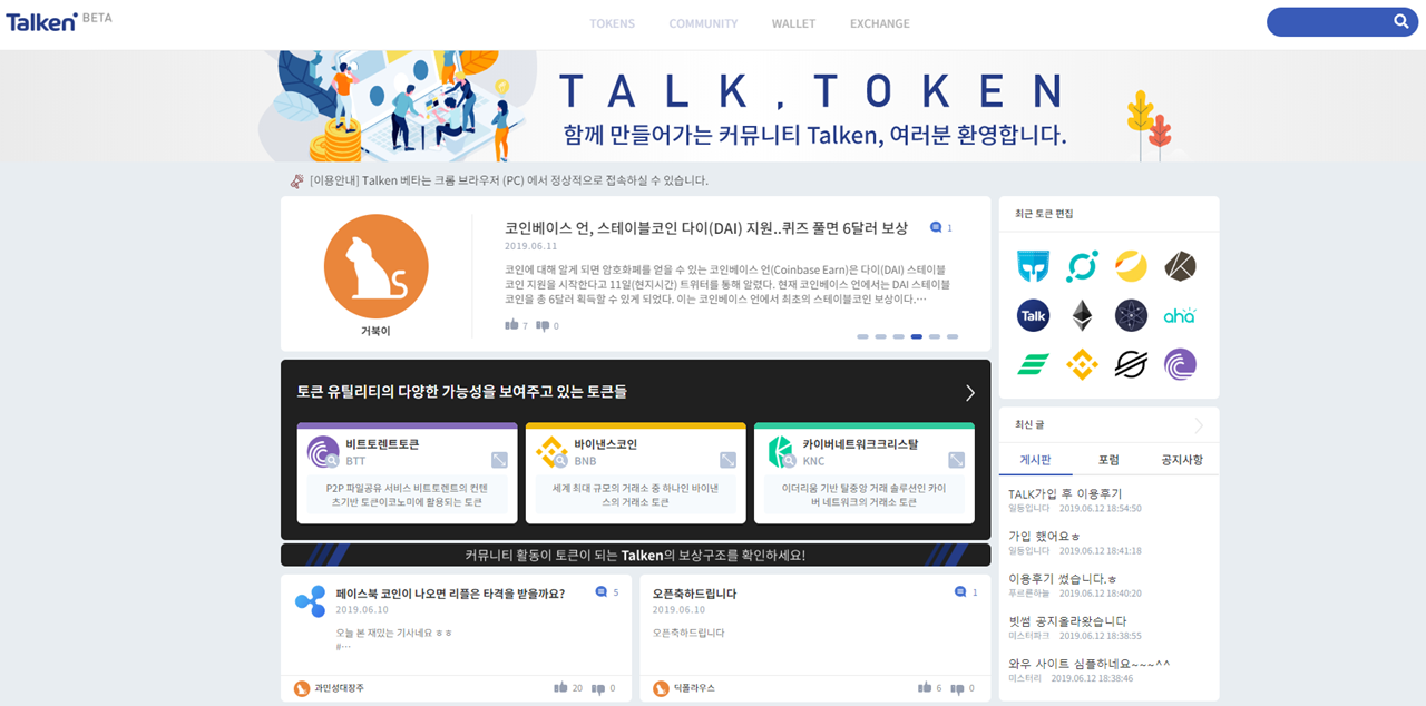 블록체인 커뮤니티 Talken 베타 서비스 오픈