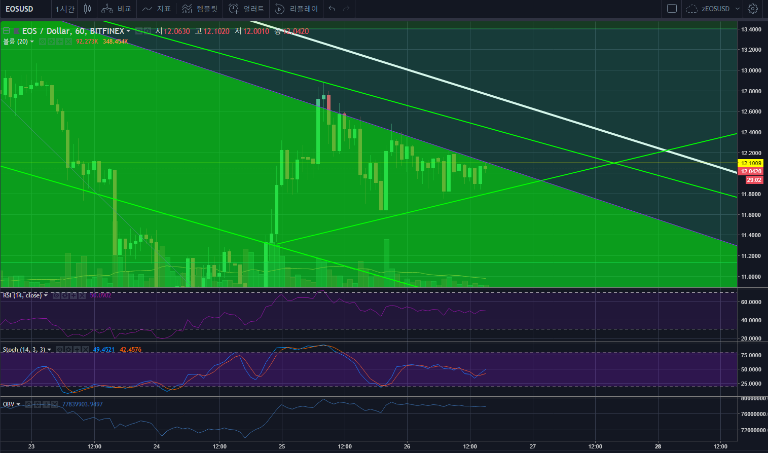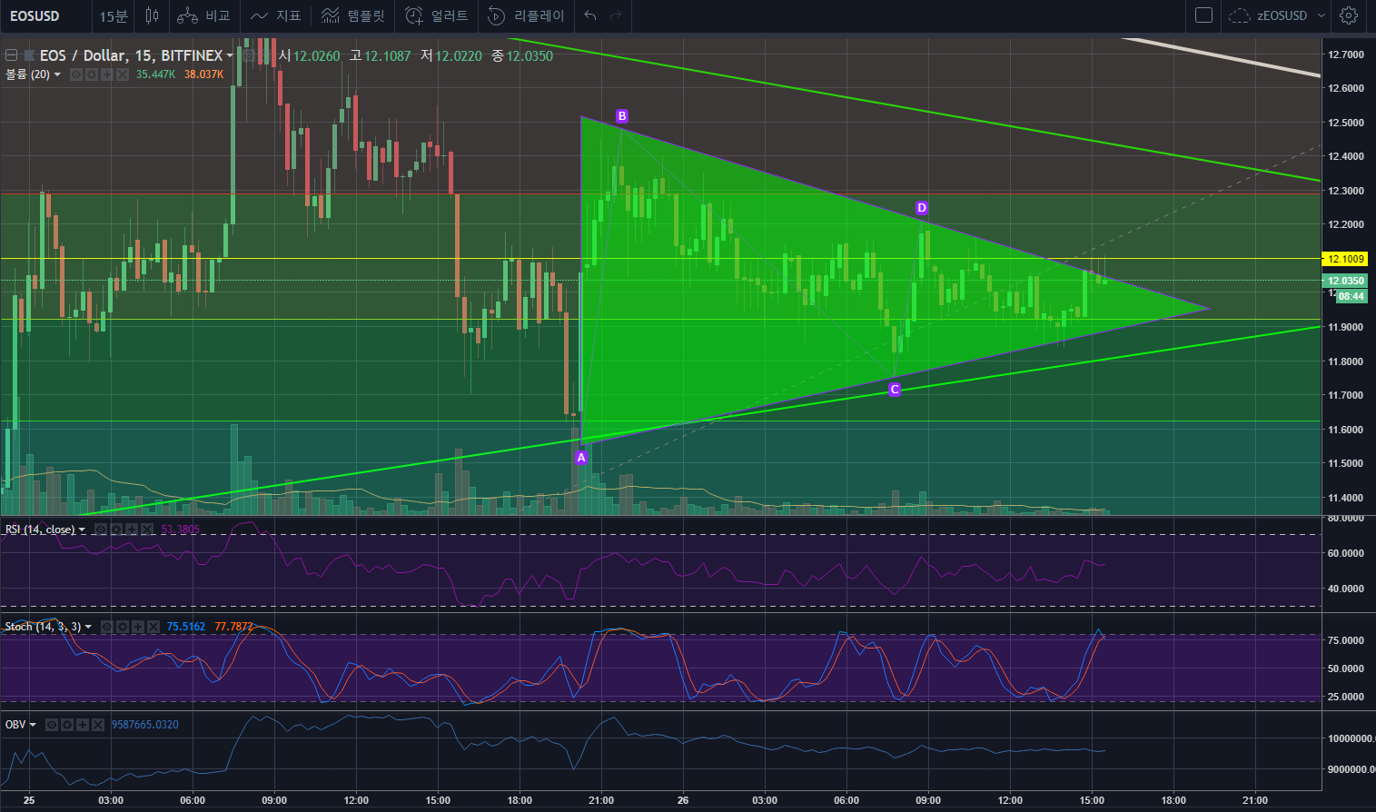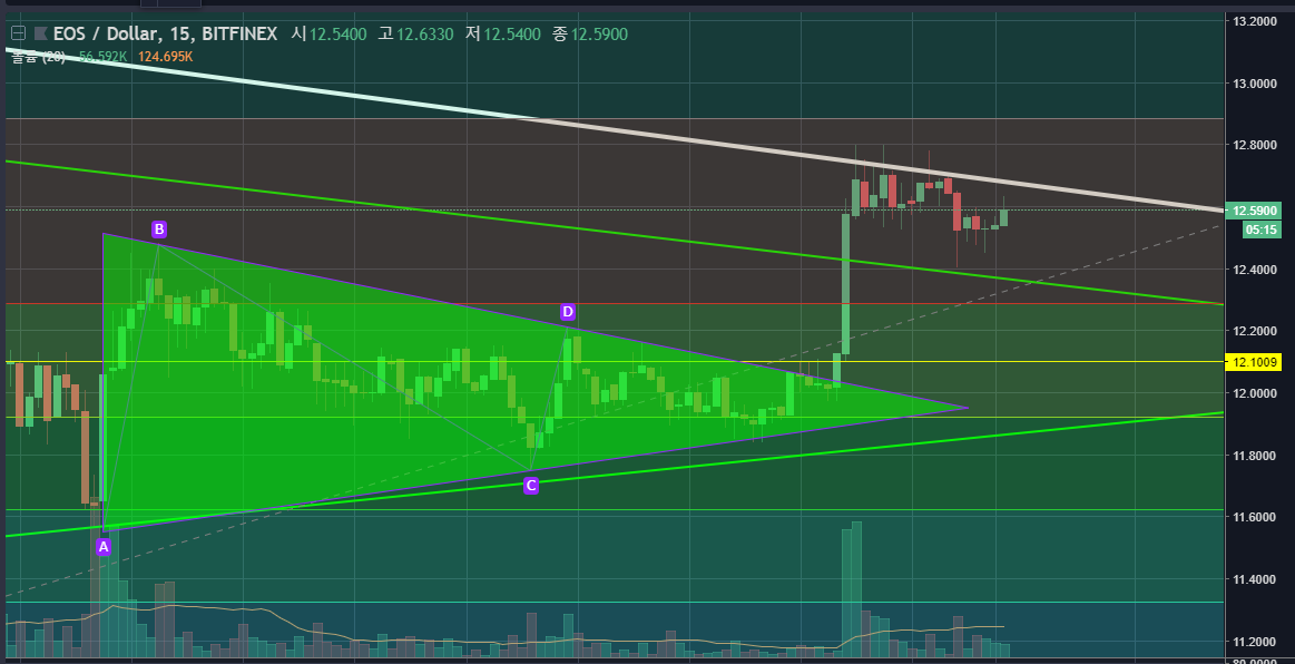 현재 12.1009 달러를 향해 삼각수렴 중입니다.