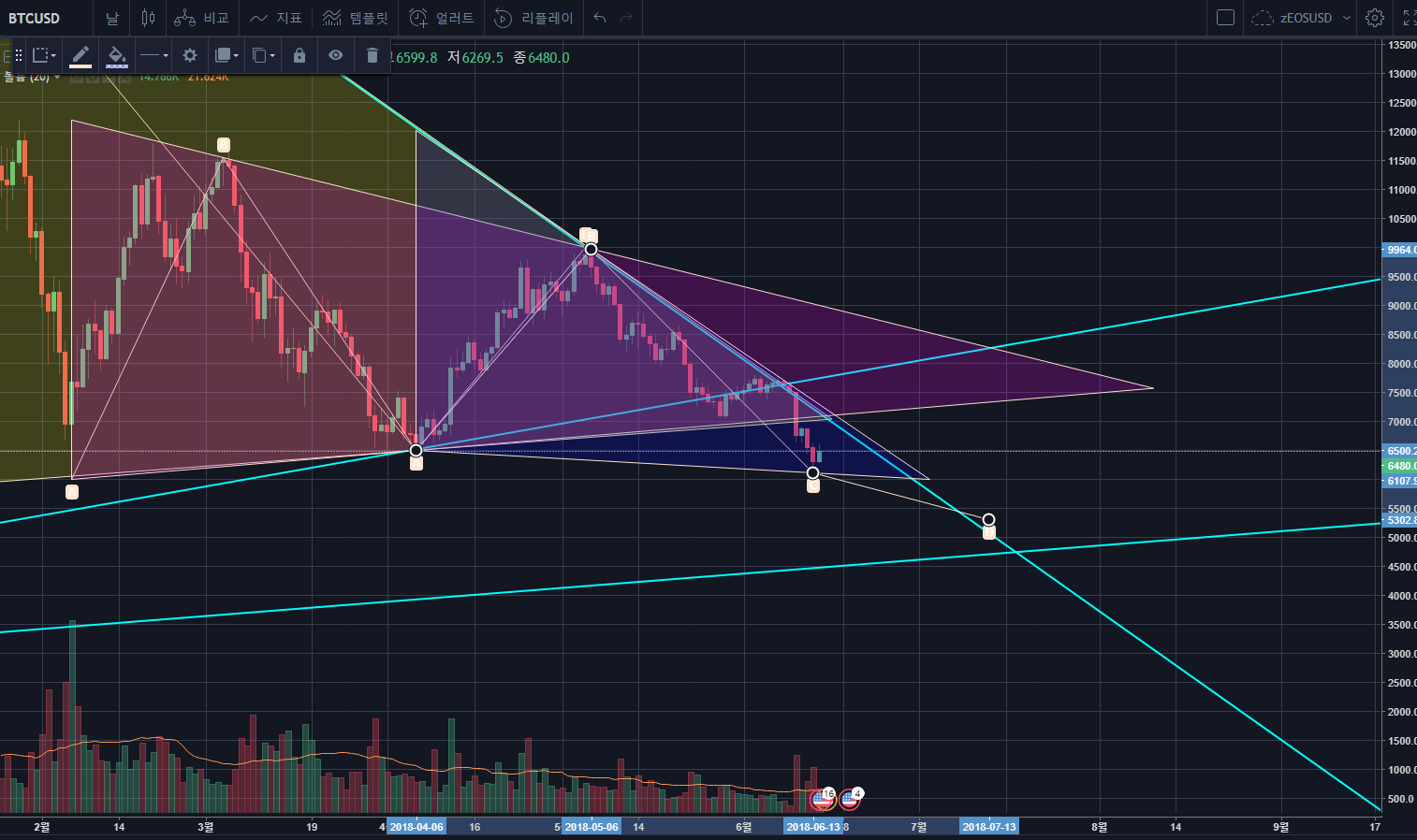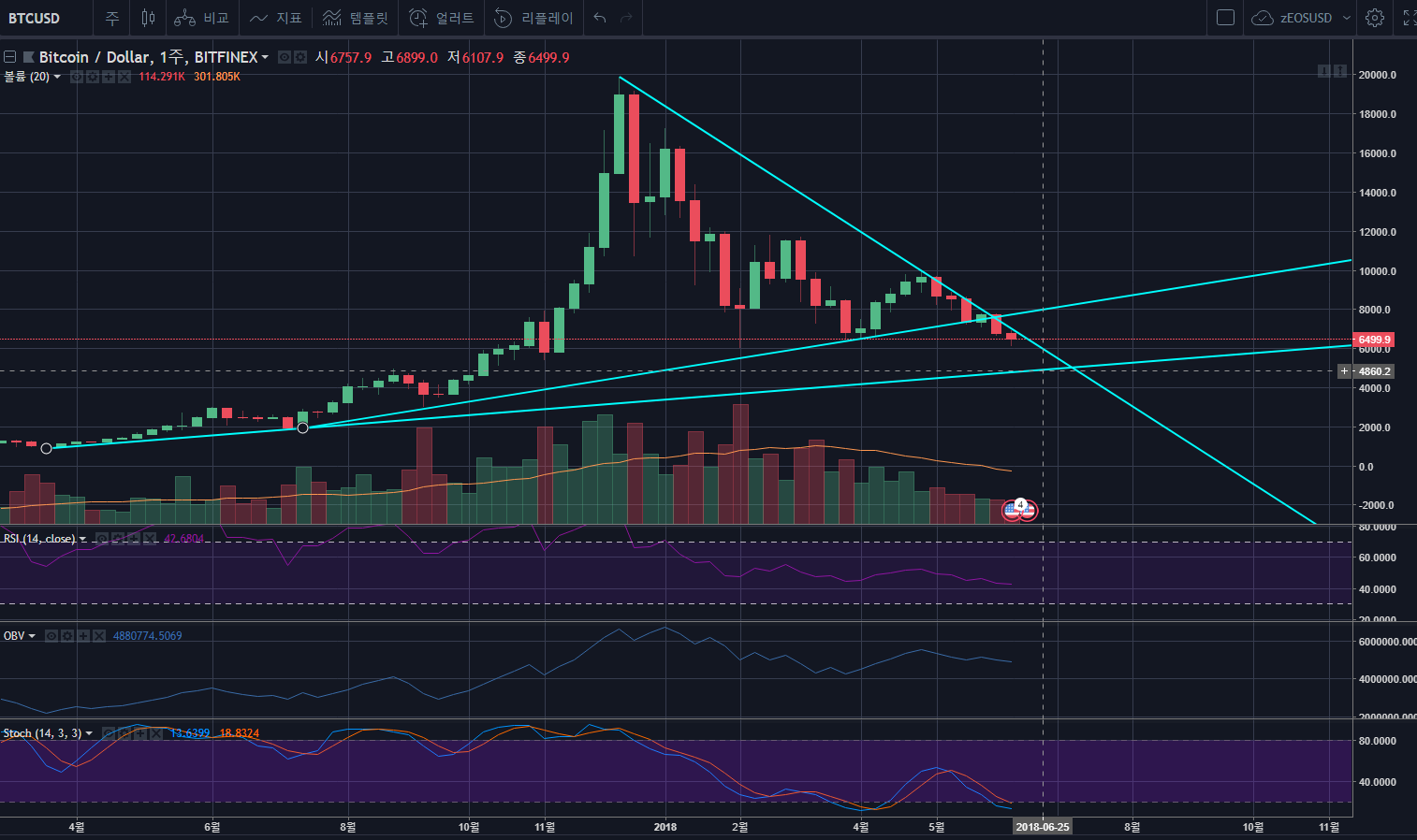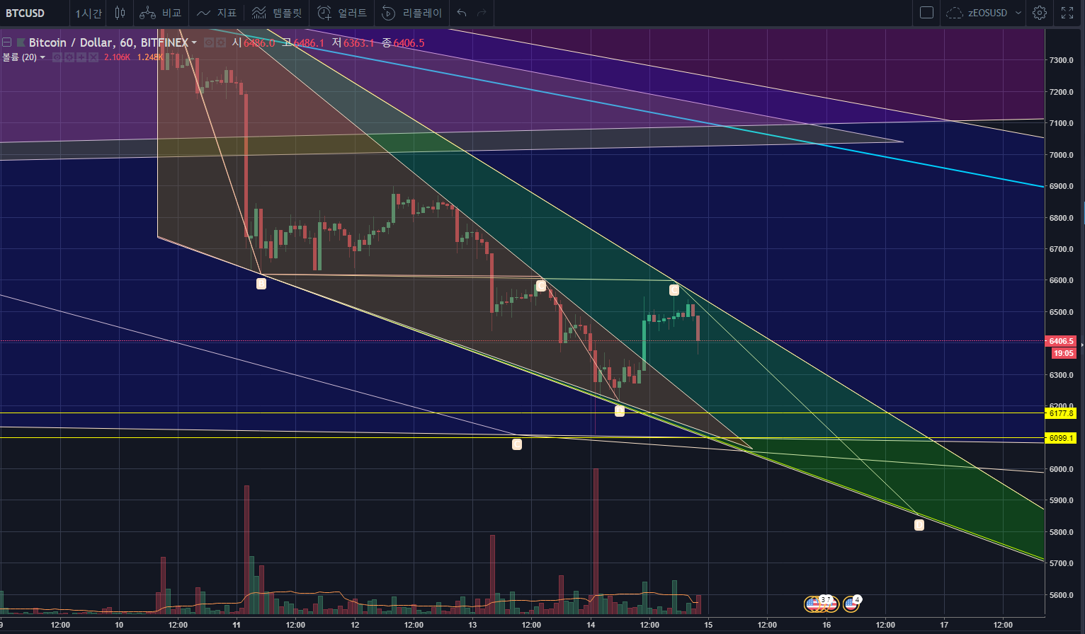 [와규차트] #017. BTC/USD, Bitfinex, 20180614