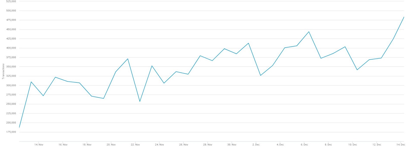 참고 : 비트코인의 일간전송증가추이.