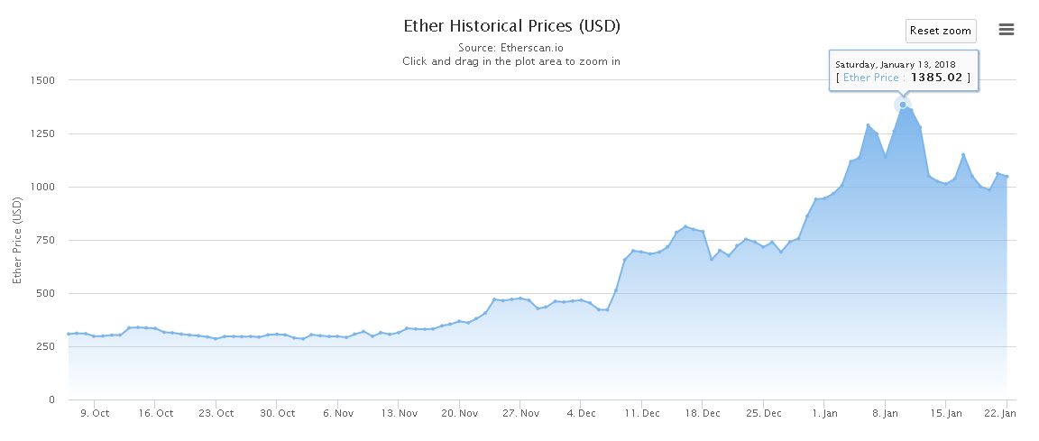 참고 : 이더리움의 가격은 2018년 1월 13일에 최고점에 도달.