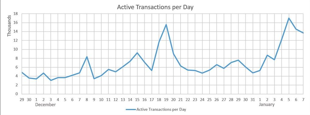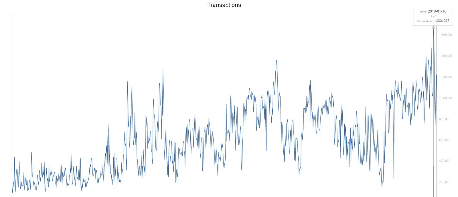 참고 : 이더리움의 전송은 2018년 1월 4일에 최대점에 도달.
