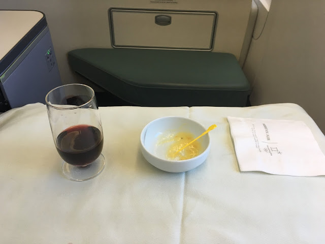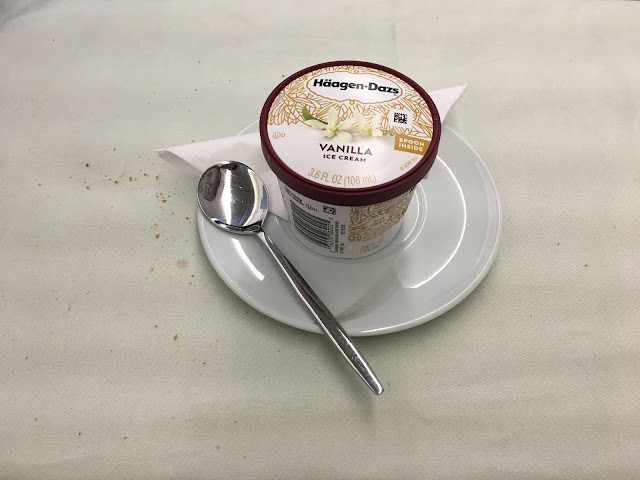 두 번째 후식은 아이스크림과 치즈케잌 중 한 가지를 고를 수 있는데 난 아이스크림을 골랐다. 비즈니스는 이륙 전에 라운지를 이용할 수 있어서 거기서 점심 요기를 좀 했더니 기내식을 먹고 나니 배가 꽉꽉 차버렸다.