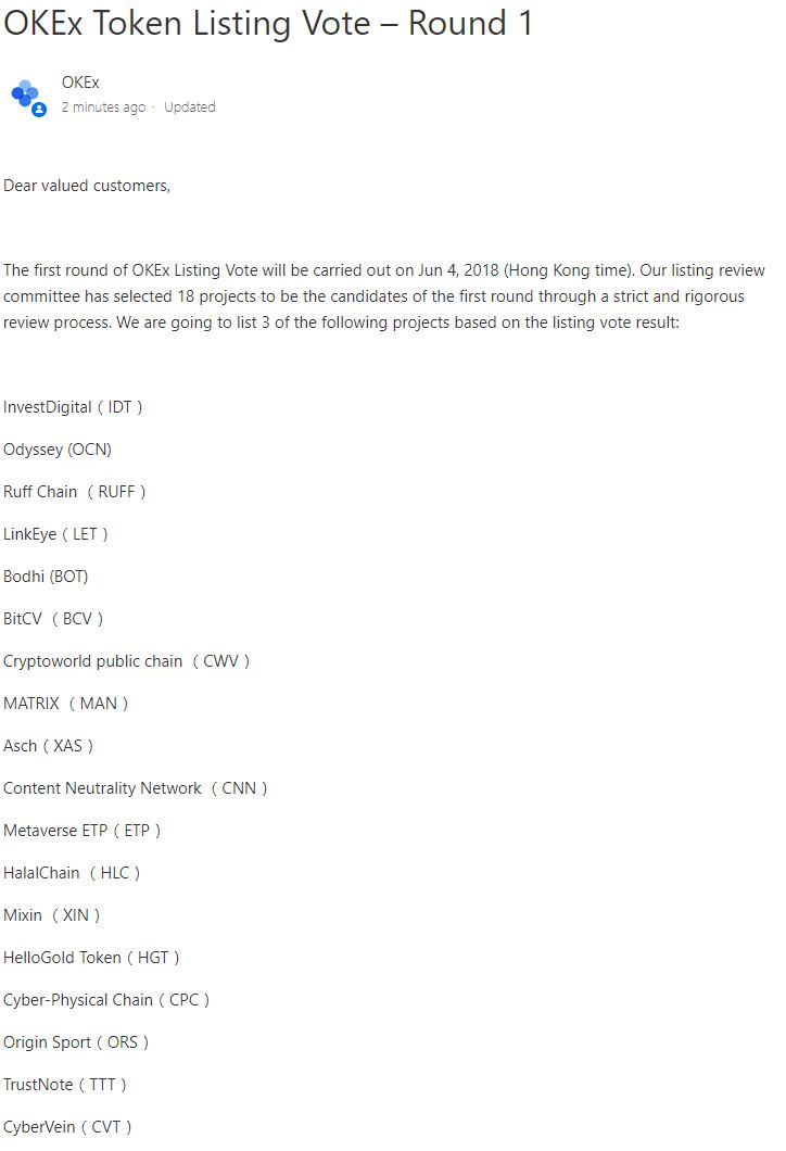 세계 1위 거래소 OKEX(오켁스) 상장 투표가 내일(6월 4일) 부터 시작됩니다.