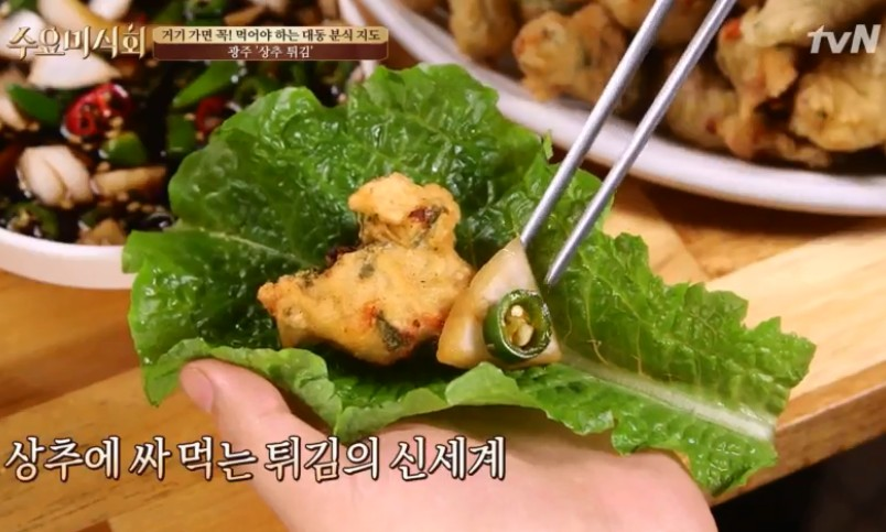 tvN '수요미식회'에서 튀김을 먹는 새로운 방법을 소개했다.