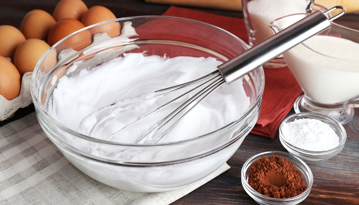 크림은 차가울수록 휘핑이 잘되지만 달걀 머랭은 반대다. 달걀 머랭은 실온에서 더 잘 쳐진다.