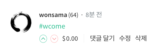 - 본인이 쓴 글 댓글에 #wcome 을 포함하여 댓글 작성