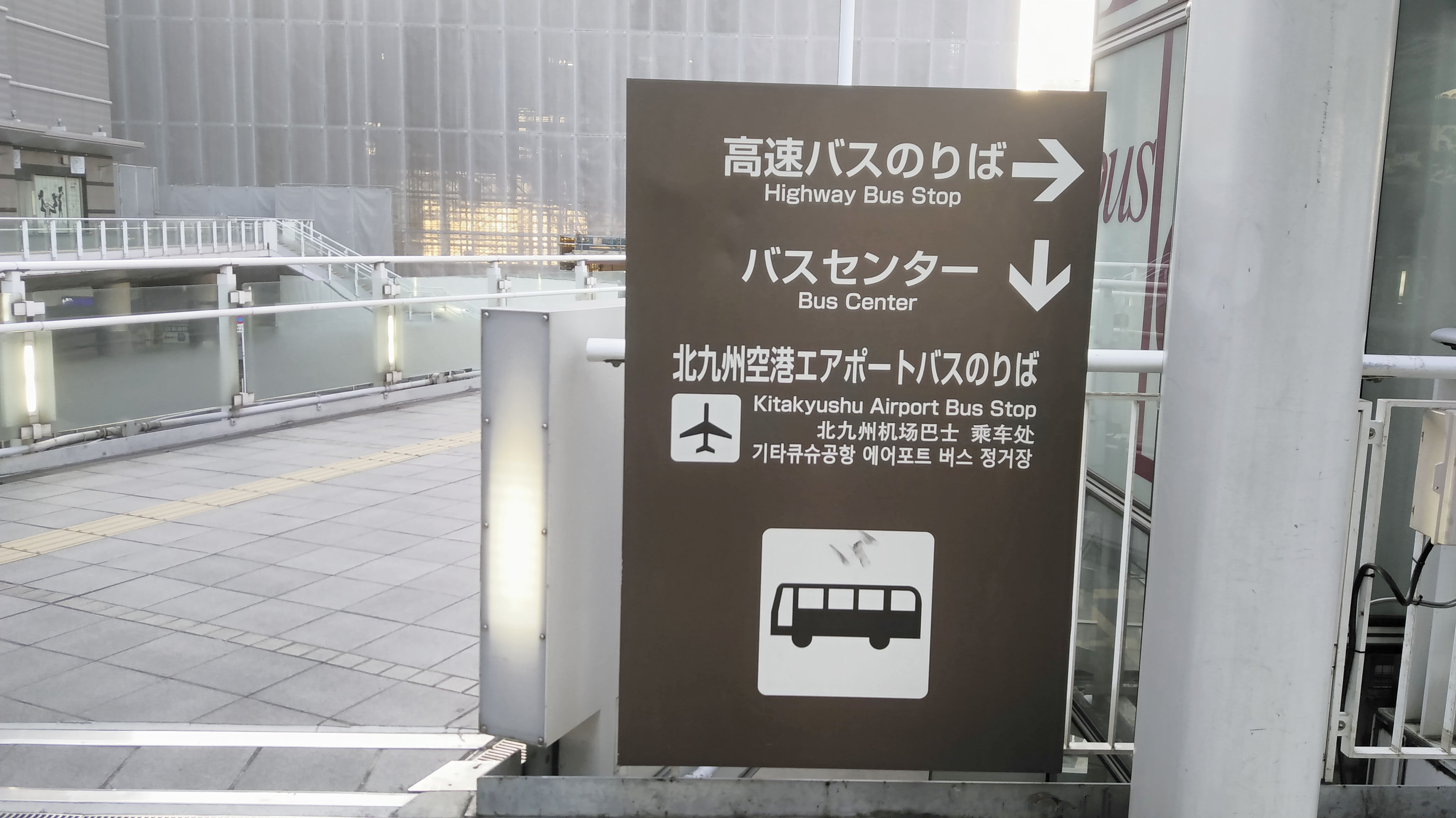 언제나와 같이 에스컬레이터를 타고 고쿠라 역으로 올라오면 버스센터 위치를 알려주는 간판이 보인다.
