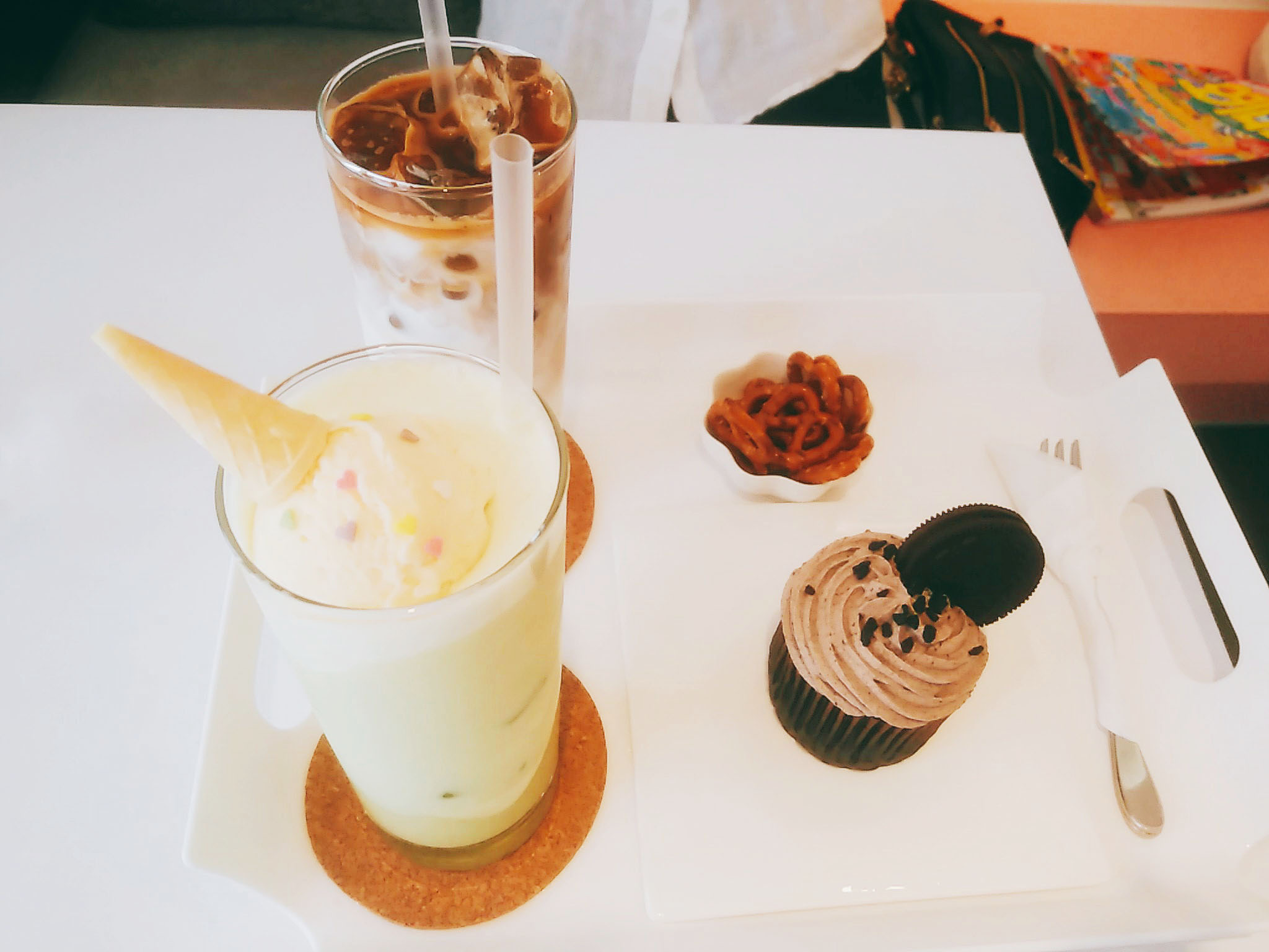 우리가 주문한 음료수와 디저트