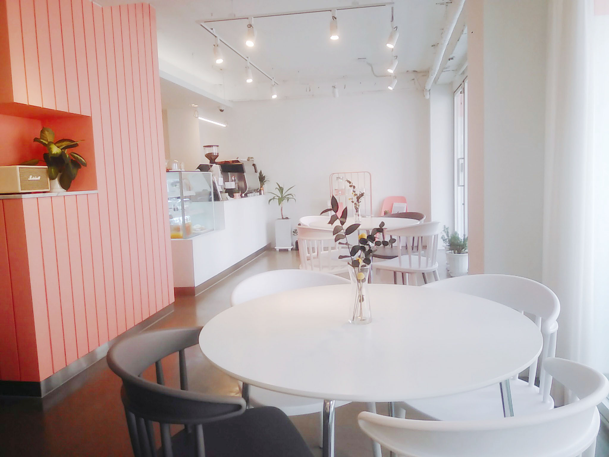 하얀색과 분홍색을 주로 사용해서 꾸민 깔끔하고 이쁜 러버블 카페
