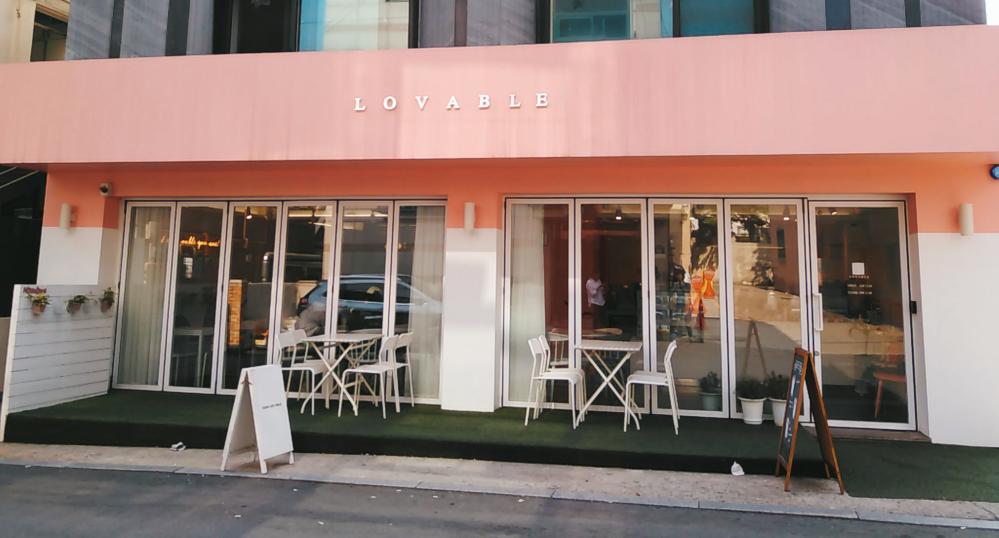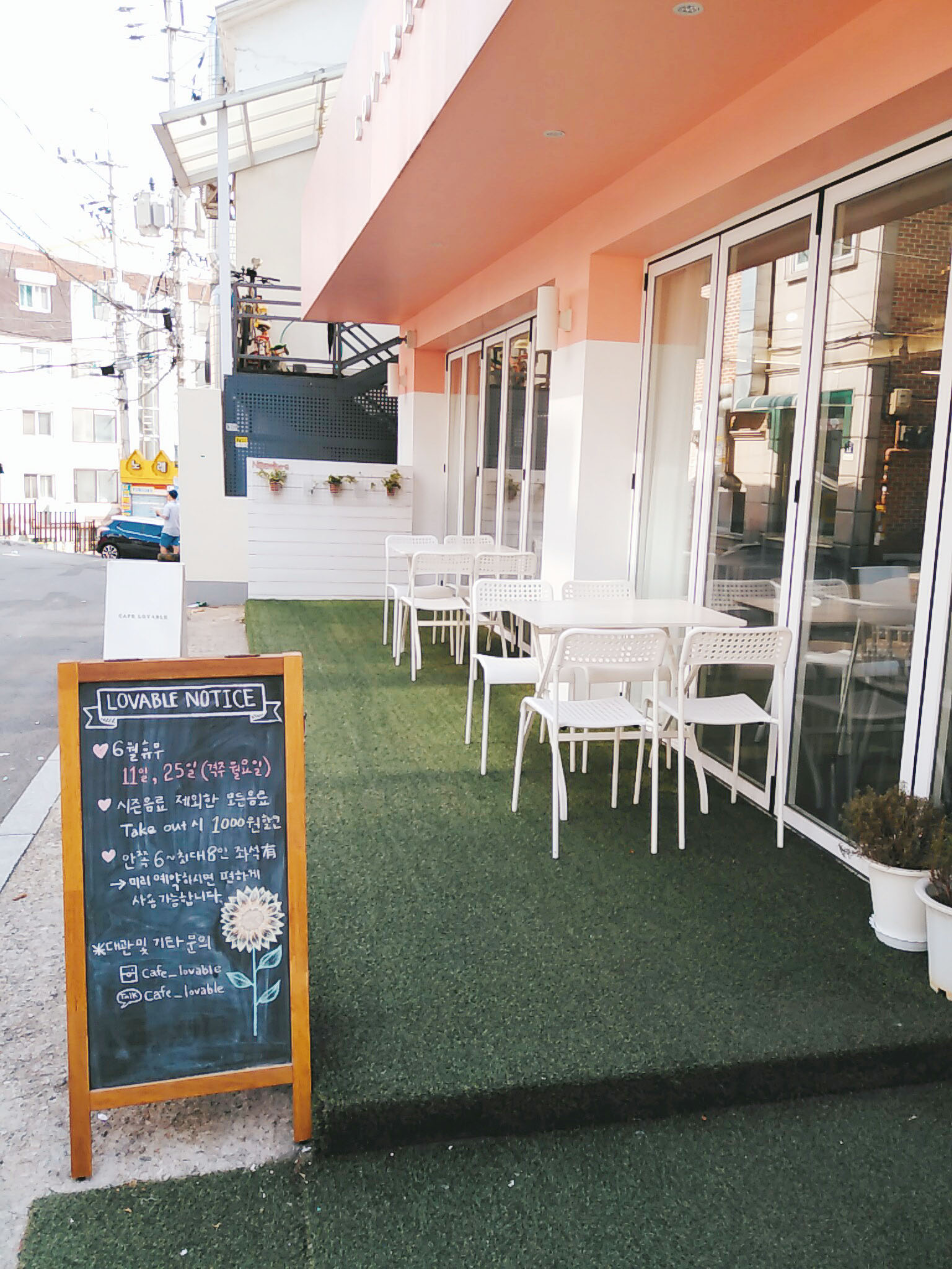 깔끔하게 꾸며진 카페 러버블 바깥 자리.
