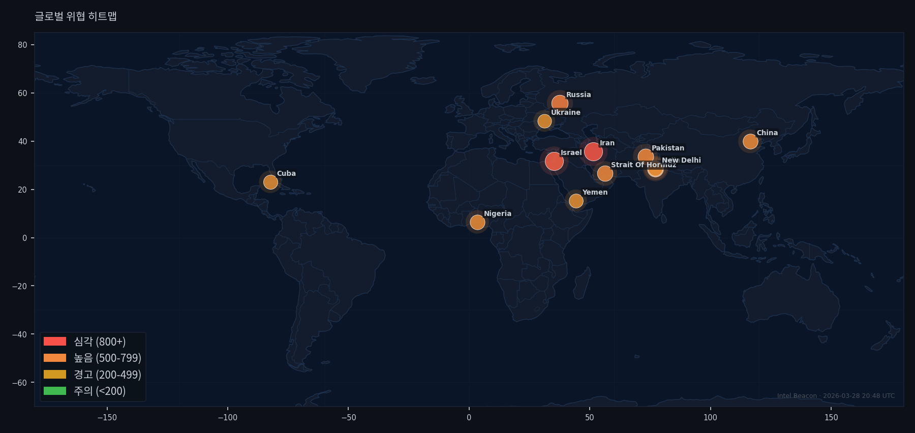 글로벌 안보 환경은 심각한 수준에 도달해 있습니다. 여러 고위험 사건이 지역 전역에서 수렴하고 있습니다. 모든 모니터링 대상 부문에서 경계 강화를 권고합니다.