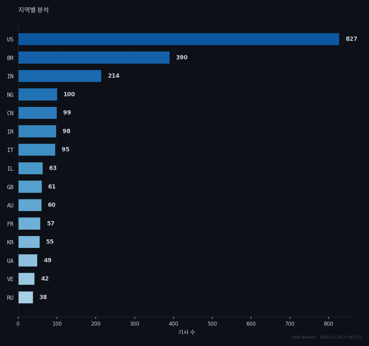 | 이란 | 958 | 64 | 68개 헤드라인; 갈등 신호; 지리적 수렴 (['갈등', '경제', '일반', '정치', 't |