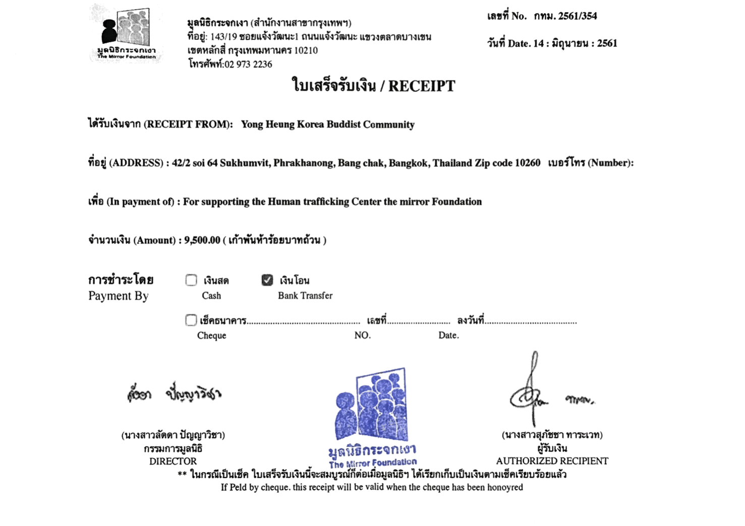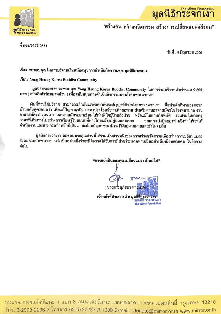 [2018-06 | 수여] 후원확인서 from Mirror Foundation / มูลนิธิกระจกเงา