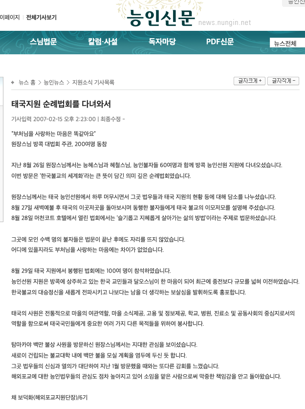 지난 8월 26일 원장스님께서는 능혜스님과 혜철스님, 능인불자들 60여명과 함께 방콕 능인선원 지원에 다녀오셨습니다.