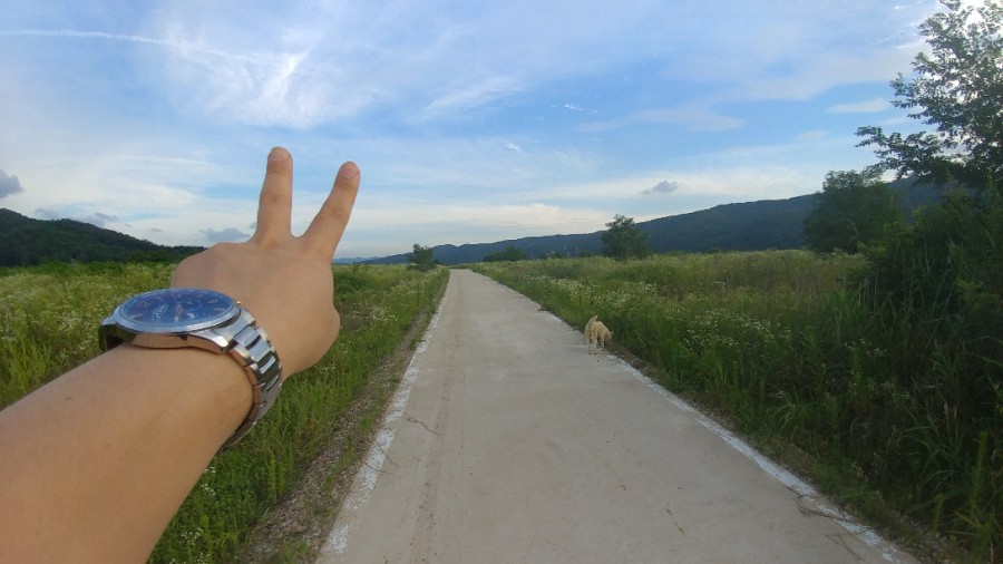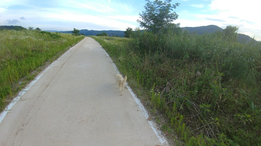 경치 보이나요? ㅎㅎ 아정말 좋네요!! 오후라서 날씨도 제법 시원하고 혼자여행와서 흰둥이랑 산책을 하게 되네요ㅎ돗자리랑 김밥 사가지고 올껄~~~ !! 담에는 꼭챙겨와야겠네요!