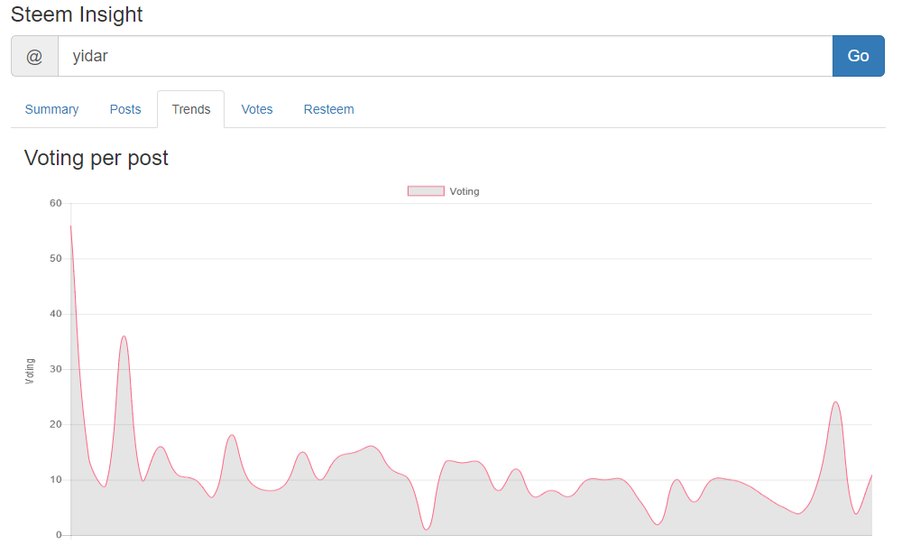 @asbear님이 개발하신 사이트로 스팀잇과 관련된 자신의 활동을 직관적으로 확인해볼 수 있는 사이트입니다. 주요 기능으로는 나한테 보팅을 많이한 사람이 누구인지, 나한테 보팅으로 가장 많은 수익을 안겨준 사람이 누구인지 확인해볼 수 있습니다. 네이버 블로그의 통계와 비슷하다고 보면 될 것 같아요! 그래프로 보여줘서 보기에도 편하고 아주 좋습니다.