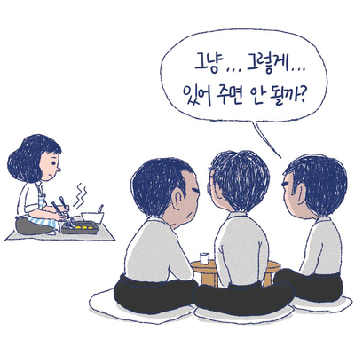 이렇듯 만화 당연하지 않지만 당연한 것처럼 관습화된 사람들의 태도, 대화, 기대를 나타내며 불합리한 상황을 명확하게 표현해줍니다.