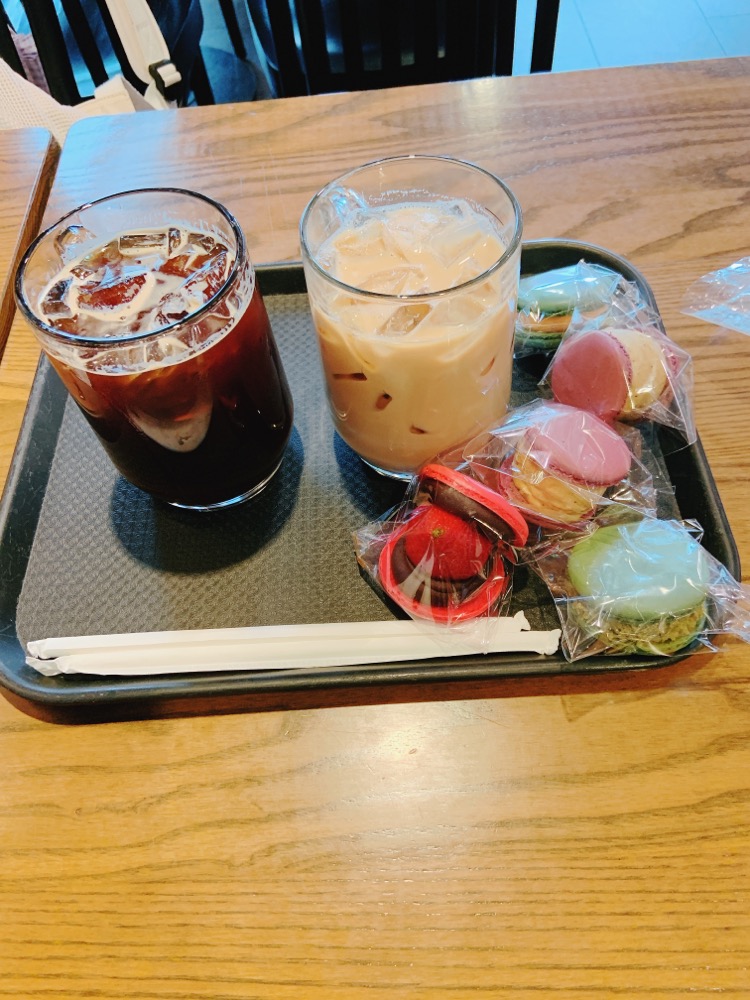 스타벅스에서 아이스 카페라떼와 마카롱의 조합❤️