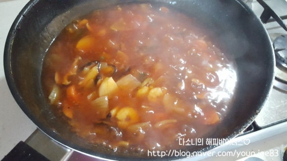 원재료에서 낙지다리와 바지락살은 없어서 빼고 칵테일새우만 넣고 만들어봤어요♡♡