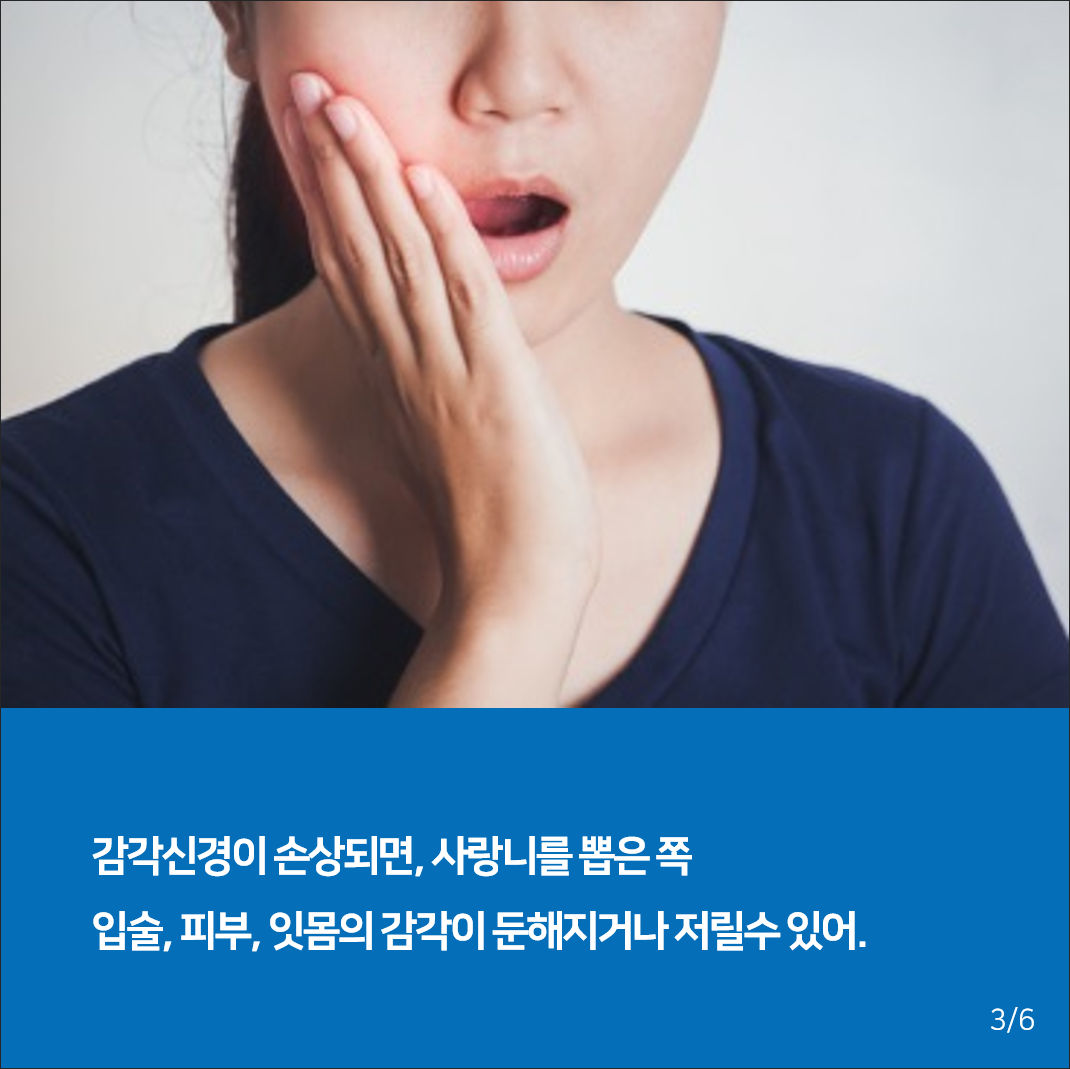 맞아요...ㅠ 가끔 혀마비도 있을수 있어요. 위에서 나온 것과는 다른 신경이 손상된건데... 쾌유하시기 바래요~!