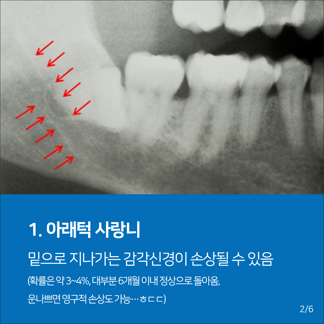 사랑니 뽑을때 이런 경고를 듣긴 했는데 ㅠㅜ 누워서 들으니 꽤 무섭더라구..ㅠㅜ