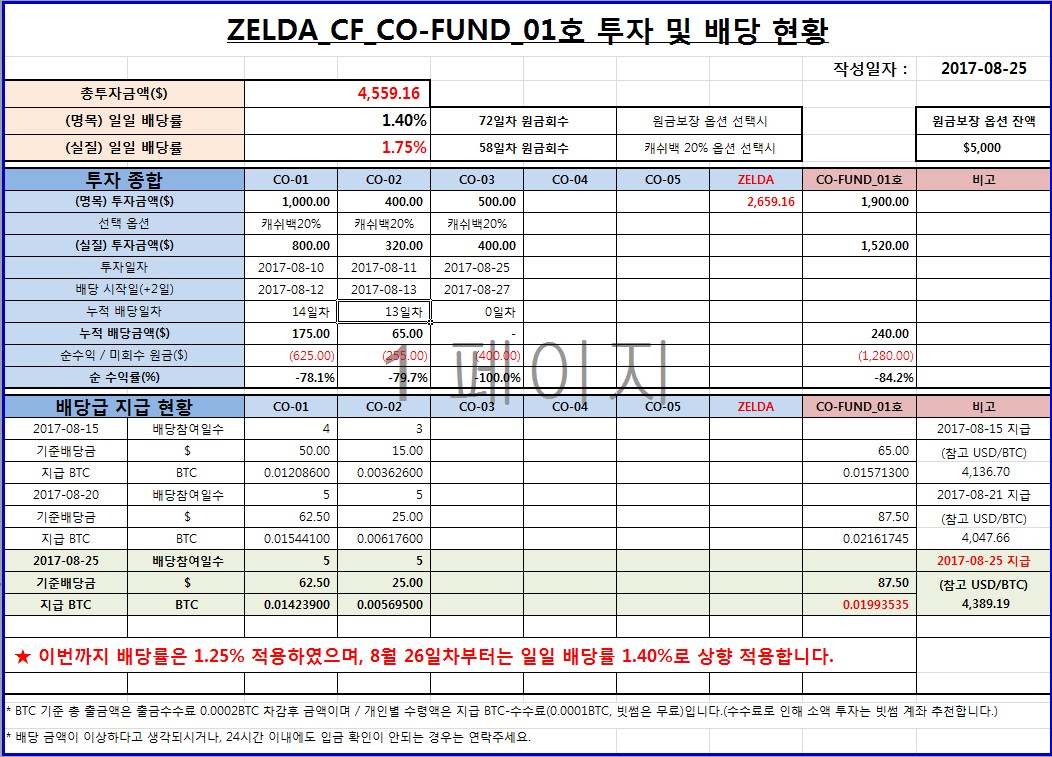 공동투자 진행은 약 15일 경과하였으며, 현재 투자 및 배당현황 참고하세요.