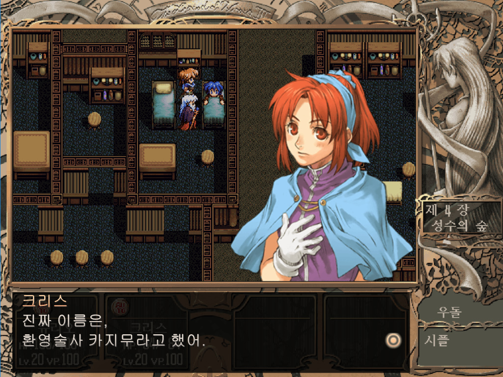 크리스 : 게다가, 시플에 돌아가도 올도스에 갈 수 없다면 우리들의 여행은 끝나지 않아. 우리 목적지는 올도스야... 올도스에 도착한다면, 반드시 굉장한 마법으로 치료해 줄 의사 선생님이 있을거야.