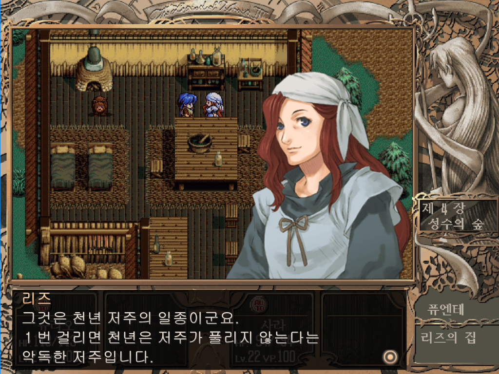 리즈 : 그것은 천년주문의 일종이군요. 주문에 걸리면, 천년은 주문이 풀리지 않는다는 악질 주문이에요. 큰일이네...