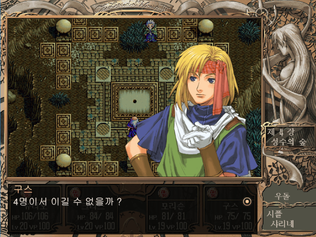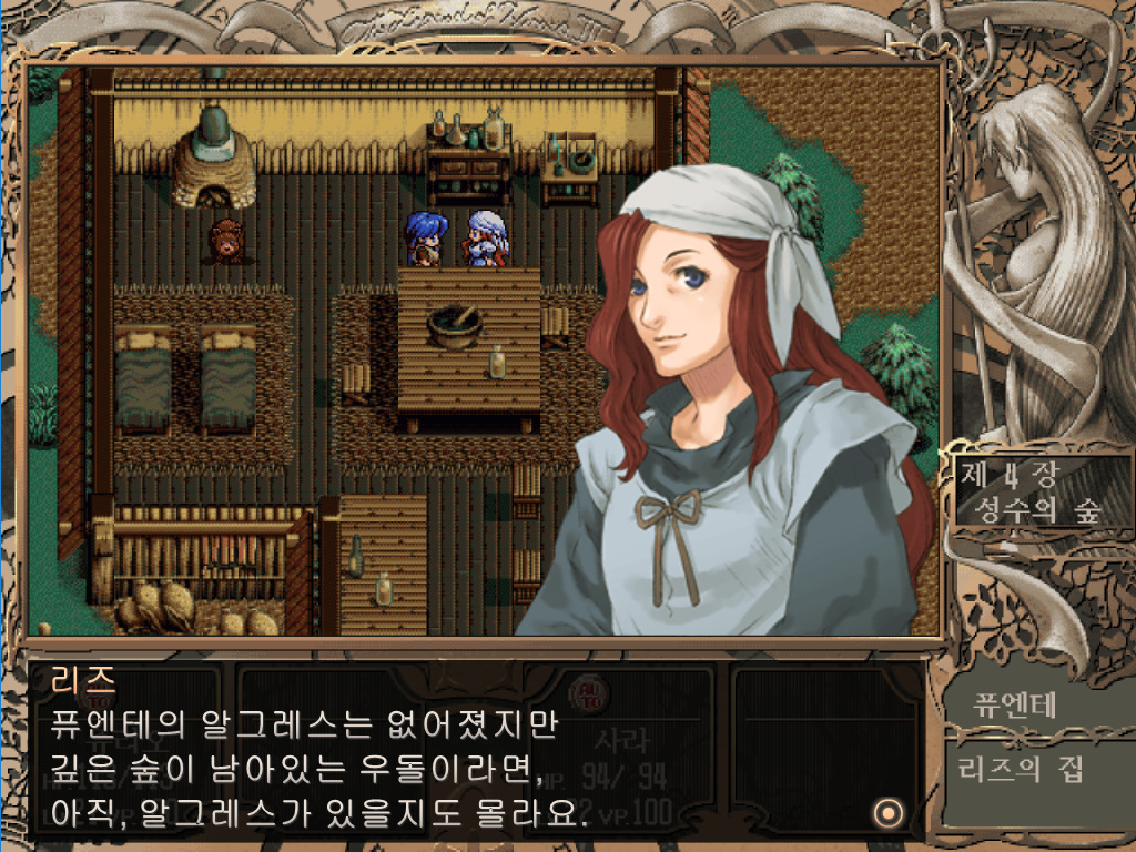 리즈 : 소문이지만 우돌에는 미궁의 숲이 있다고 들은 적이 있어요. 알그레스가 있을 가능성이 있는 건, 그 숲뿐이지요.