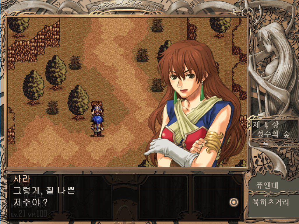 사라 : 어이가 없을 정도로 결단력이 빠르고 낙천적인 녀석이네... 하지만, 마음에 들었어. 미궁의 숲을 찾으러 가볼까?