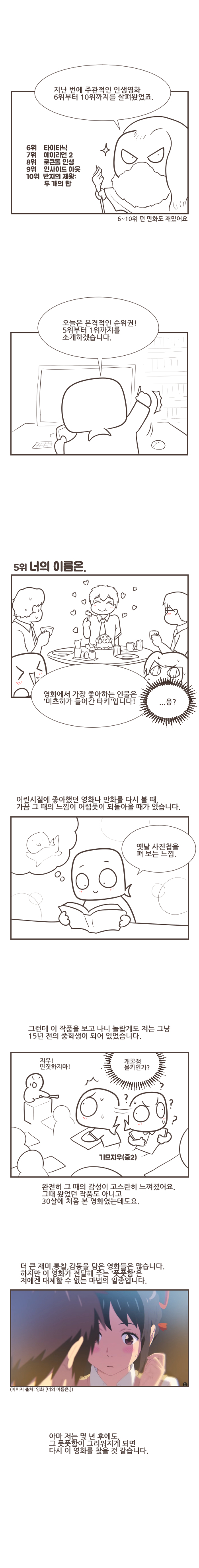 [웹툰] 인생영화 top 10 골라본 만화(1~5위, 재업)ziwoo (45)in #kr • 8 years ago 안녕하세요 기므지우입니다. 제가 좋아하는 영화에 대해 그려봤네요. (태그에 대해 이제야 제대로 알아서 재업합니다ㅠ) 들어가기 앞서 지난 화의 링크를 살짝 걸어봅니다. 인생영화 6~10위 #kr-webtoon #webtoon #kr-cartoon #kr-movie