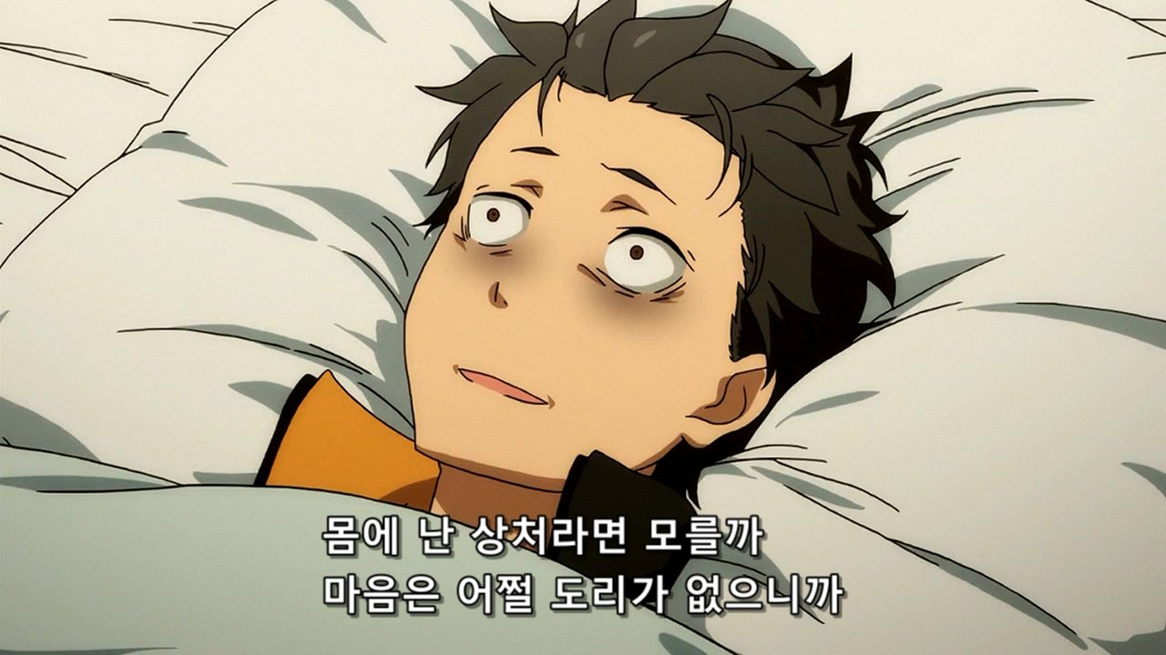 하지만 또 그렇게 바닥까지 내몰린 상황이기에 렘에게 긍정 받고 사랑과 신뢰를 통해 절망을 딛고 일어서는 모습은 이 애니의 백미 장면 중 하나라고 생각한다.