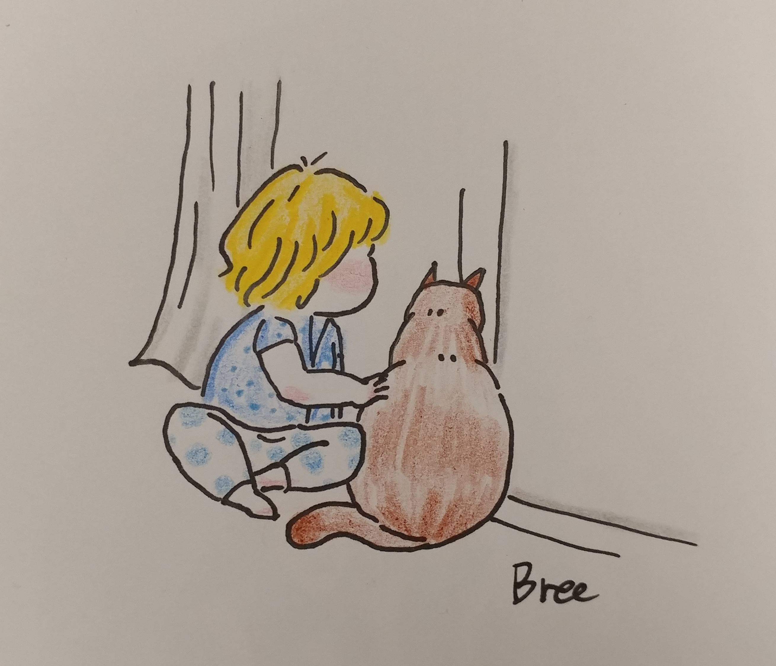 아쉬운대로 다음 목표로 삼은 건 아기와 고양이가 창밖을 내다보는 그림이었다. 이건 고양이 한 마리니까 한번 해볼만하지 않을까?