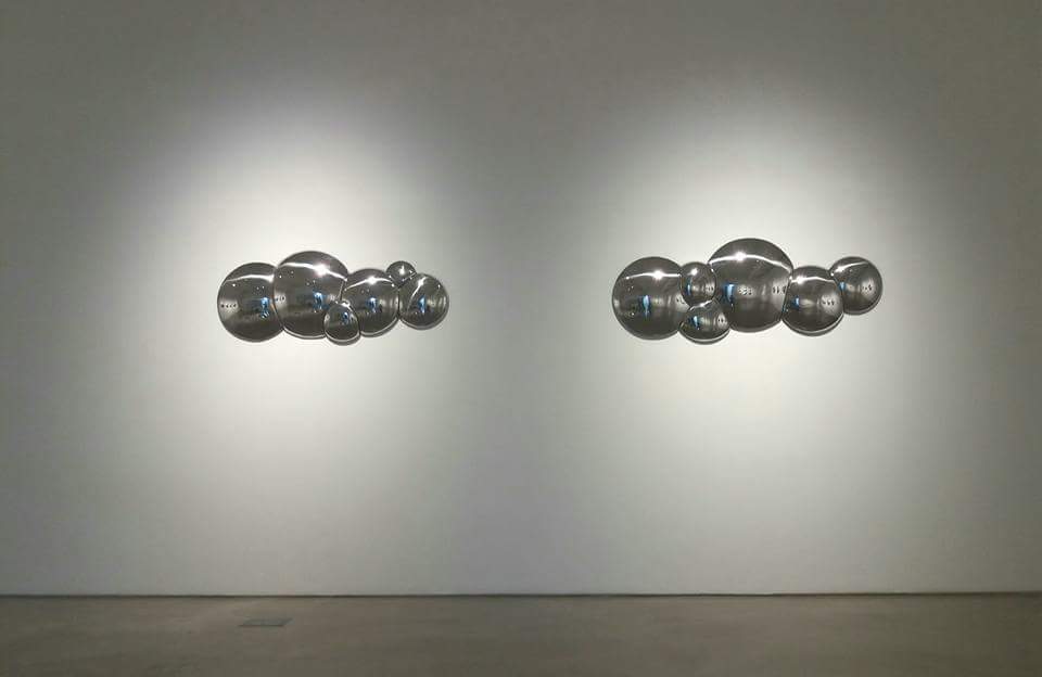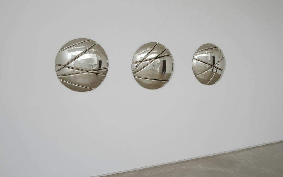 거대한 전시장 바닥에는 둥근볼록형 거울들이 그리고 벽면에는 그 둥근 볼록형 거울들을 서로 연결시켜 마치 ‘섬’처럼 보이는 조각들이 설치되어 있다. 오잉? 그런데 그 거울들에 한결같이 금이 간 것이 아닌가.
