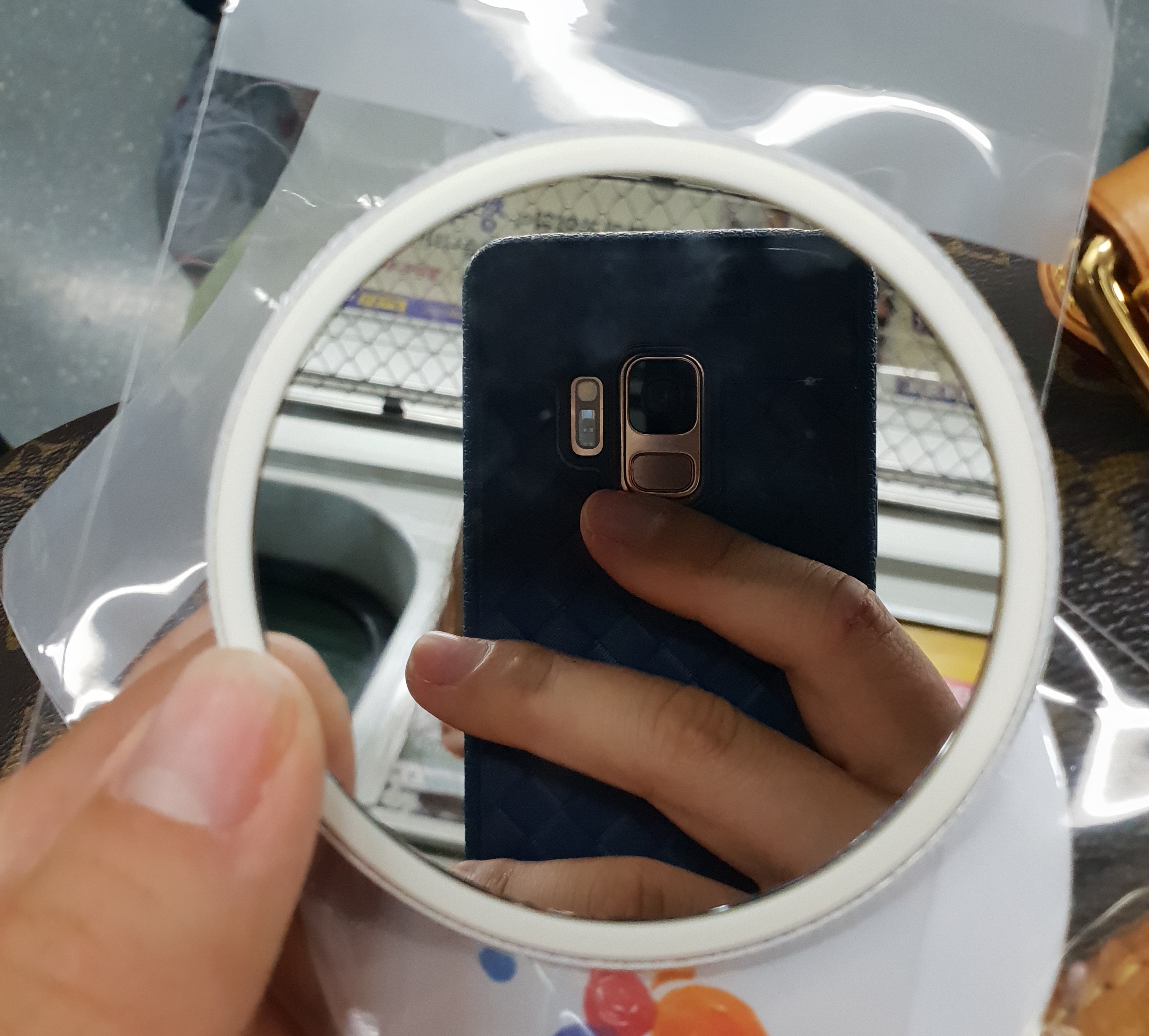 순서대로 놓고 압력을 가하면 손거울이 간단히 완성된답니다~!!