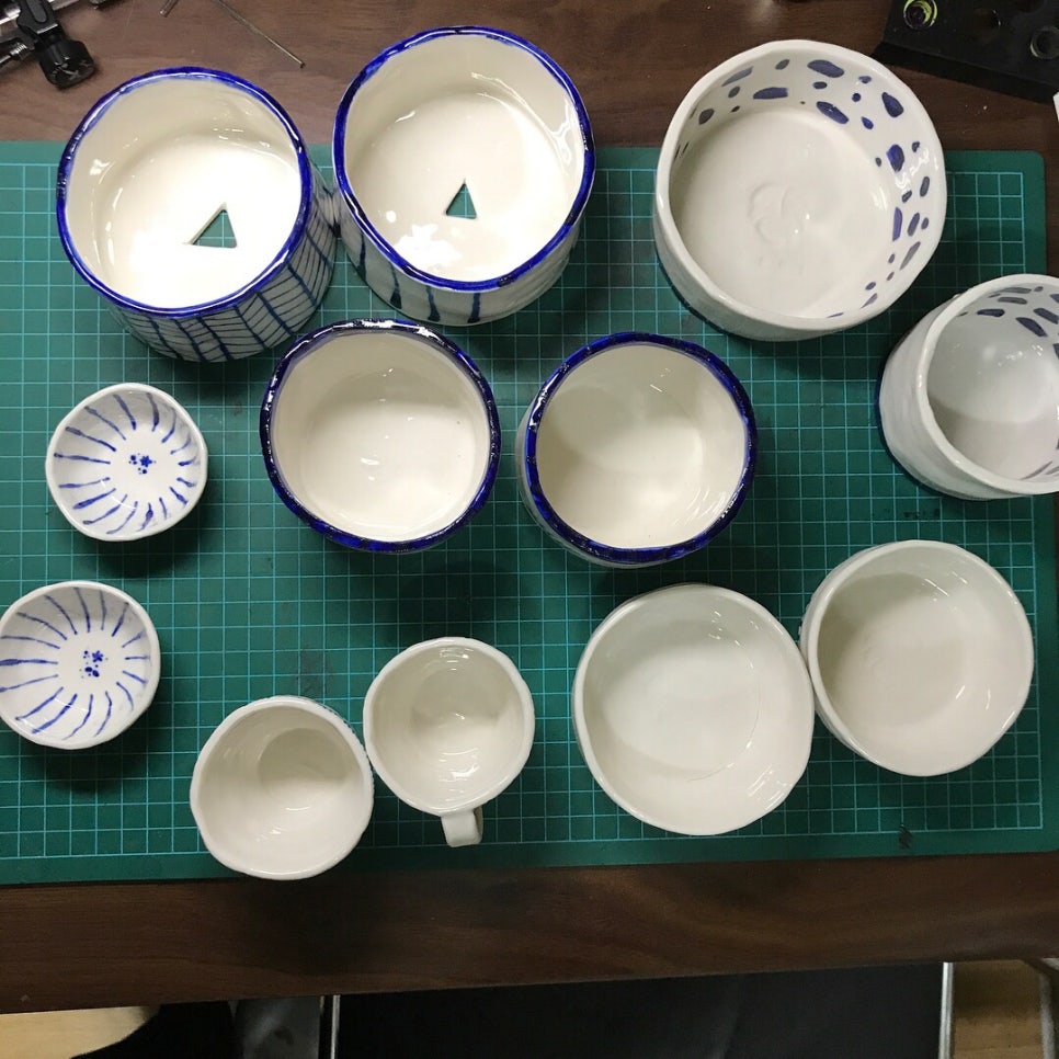 처음에 접시 먼저 굽고 컵들을 구었어요.