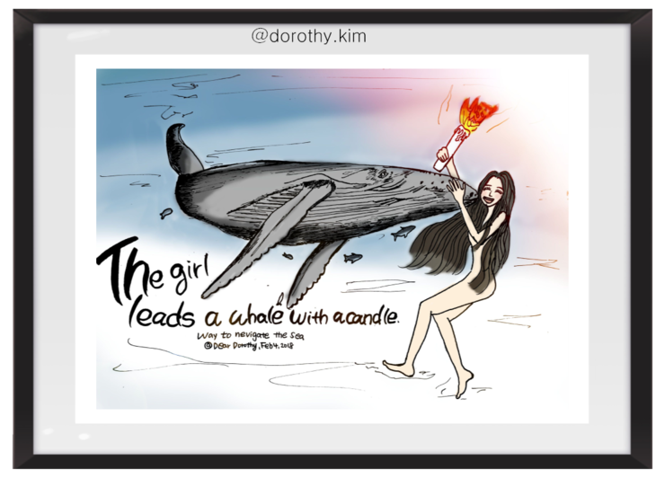 ART CONTESTcoin -Painting With 3 Given Words_The girl leads a whale with a candle