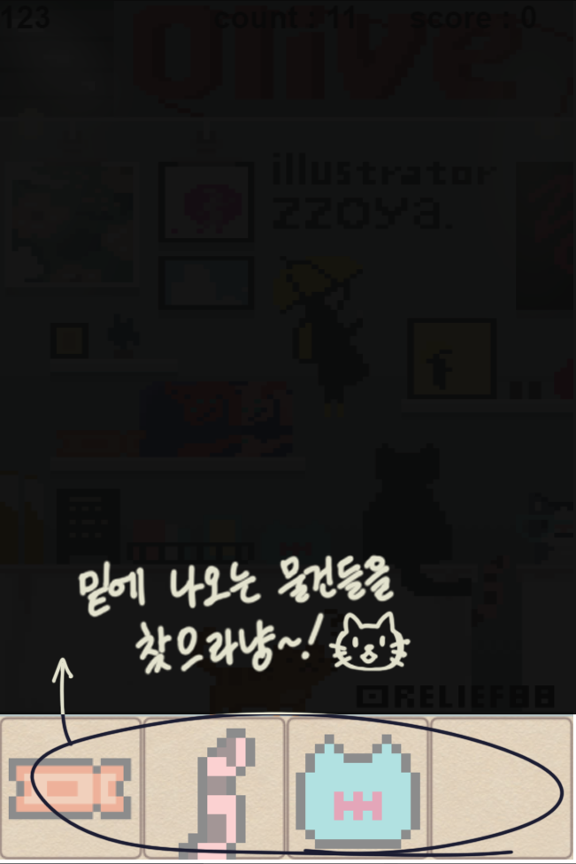 저렇게 밑에 찾아야할 물건들이 놓여있습니다 ^^