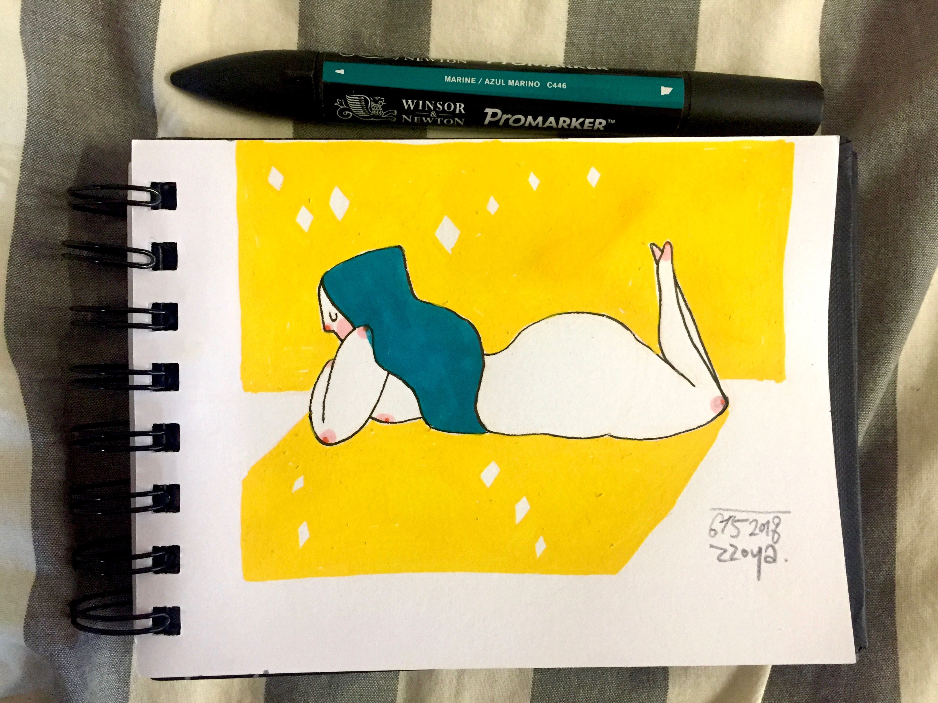 보통은 잡생각이 많을때 그림을 그리곤 했다. 그림을 그리다 보면 평정을 되찾게 되는데 이번엔 잡념이 뛰어넘어서 펜선 따다가 좀 망했다. 그리고 컬러링하려는 순간 내가 자주 쓰는 마커가 이미 한국에 있거나, 포장 짐 속에 있다는 걸 깨달았다. 부랴부랴 눈에 보이는 마커 몇개를 주워서 컬러링하기 시작했다. 원래 의도와는 다르지만 이 느낌도 좋다. 한국에 돌아가면 디지털화 해야겠다.