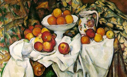 어떻게 예술이 시대를 앞서갈 수 있는가?라는 질문에는 후기 인상주의 미술가 폴 세잔(1839~1906)을 보면 명징하다. 폴 세잔 이전까지의 그림 속에는 단 한 가지의 시점만이 존재하는 그림이었다면 아래 폴 세잔의 그림 속에는 2차원 평면임에도 불구하고 여러 가지 시점이 존재한다. 어떤 사과들은 위에서 보는 시점으로, 어떤 사과들은 앞에서 보는 시점으로, 서로의 시점이 어긋남에도 불구하고 조화로운 느낌까지 담고 있다.