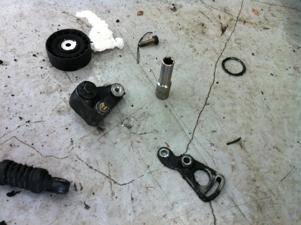 본넷을 열고 쳐다보니.. 흠.. 아이들 베어링의 고착으로 펜벨트가 끊어져...