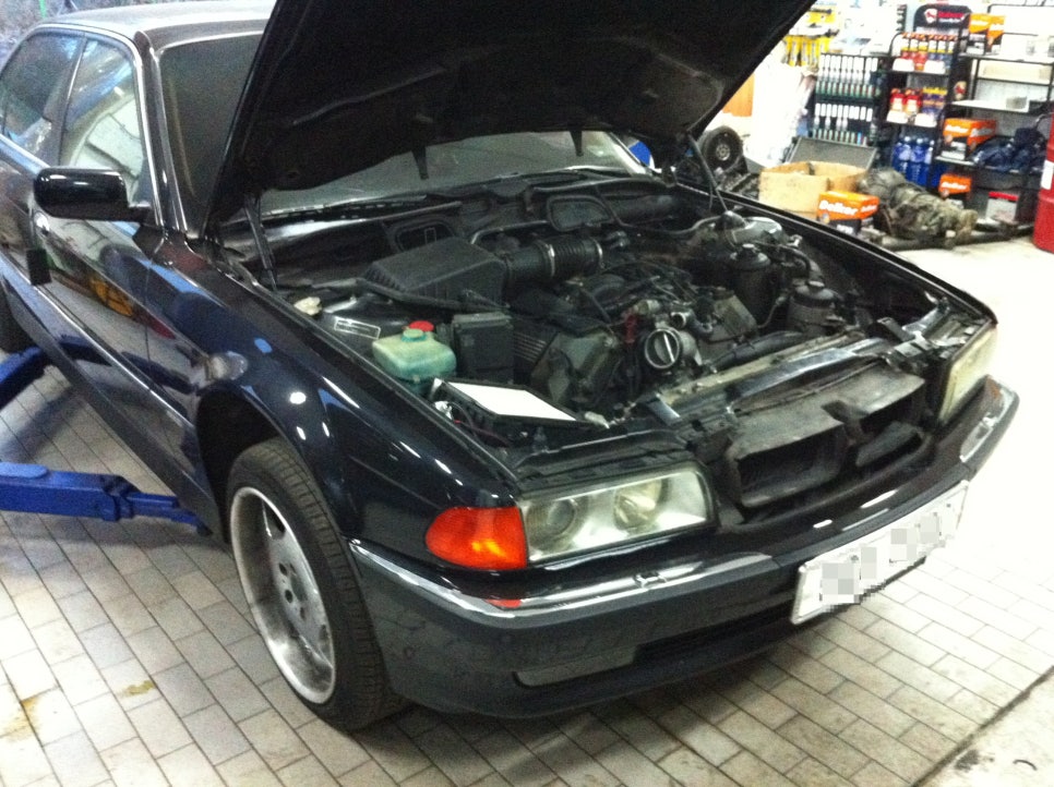 BMW 735LI가 렉카에 실려 견인 입고된다...